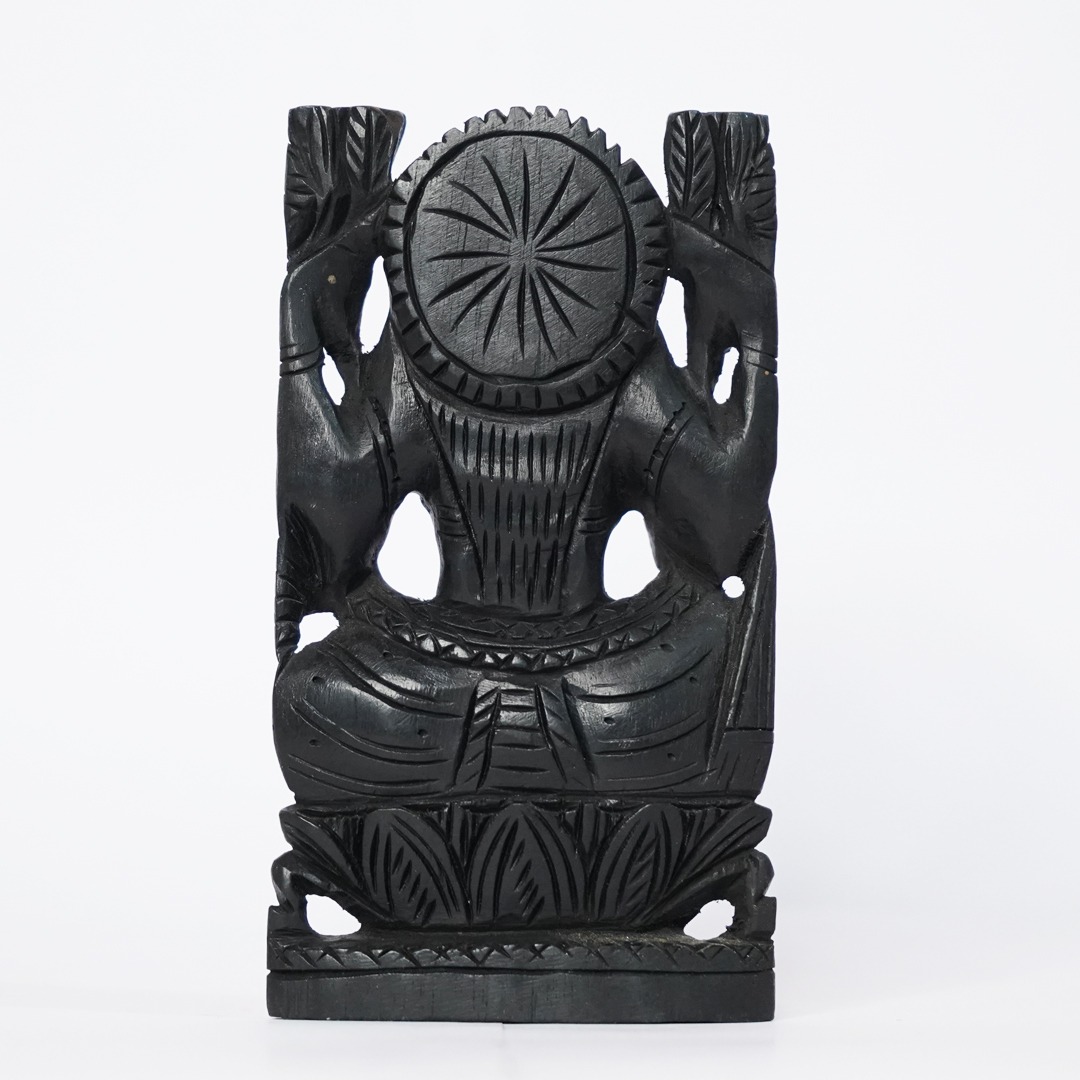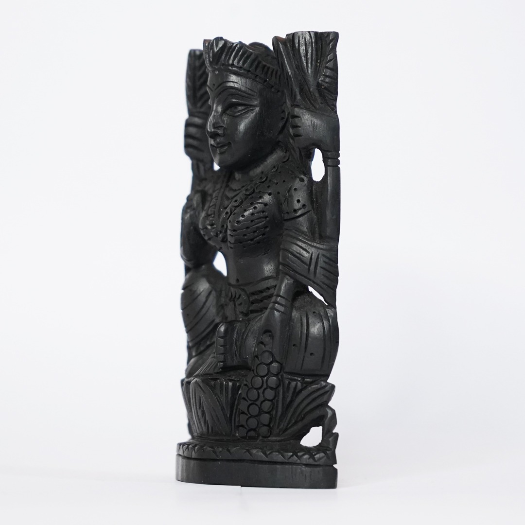 Invite wealth, prosperity, and divine grace into your home with this sacred Goddess Mahalakshmi statue, exquisitely hand-carved from auspicious Karungali (Black Ebony) wood. Goddess Mahalakshmi, the deity of wealth and abundance, blesses devotees wit...